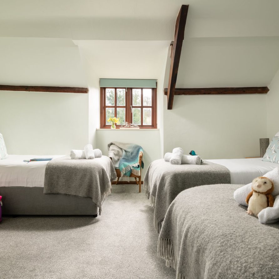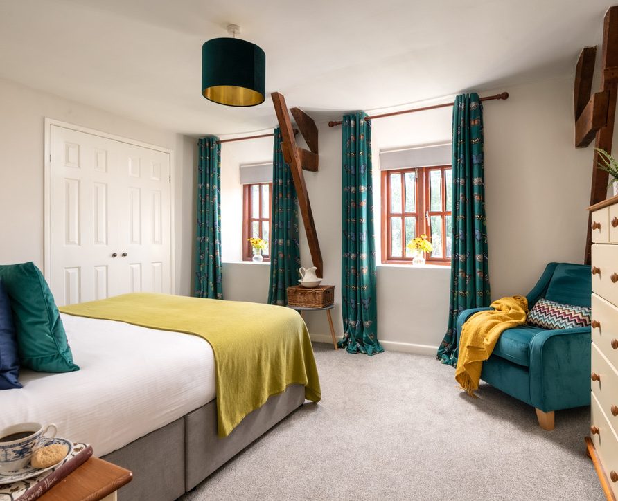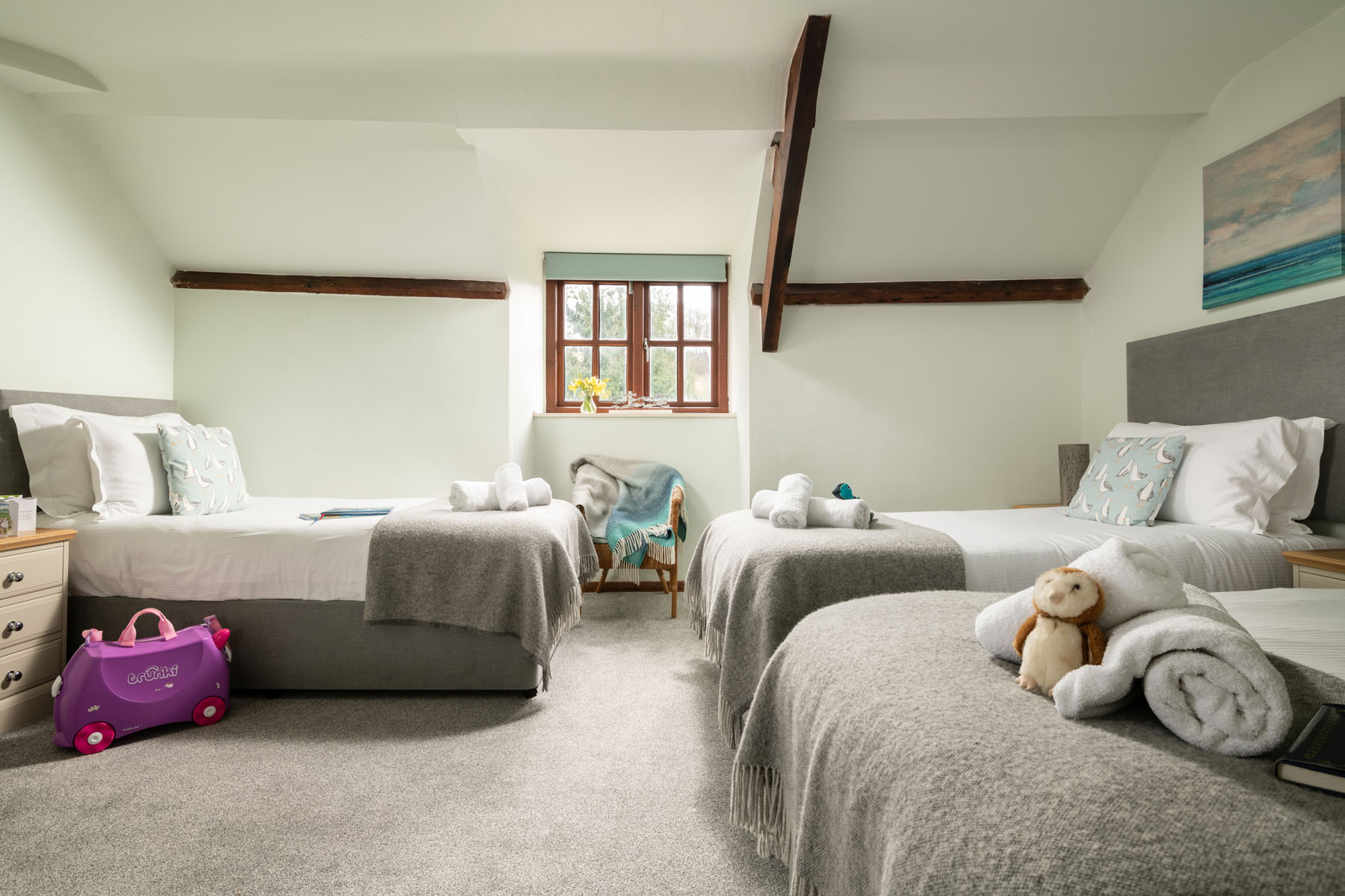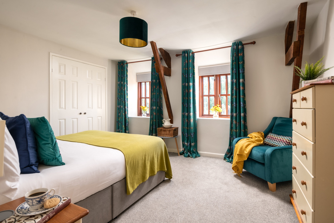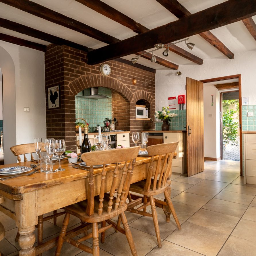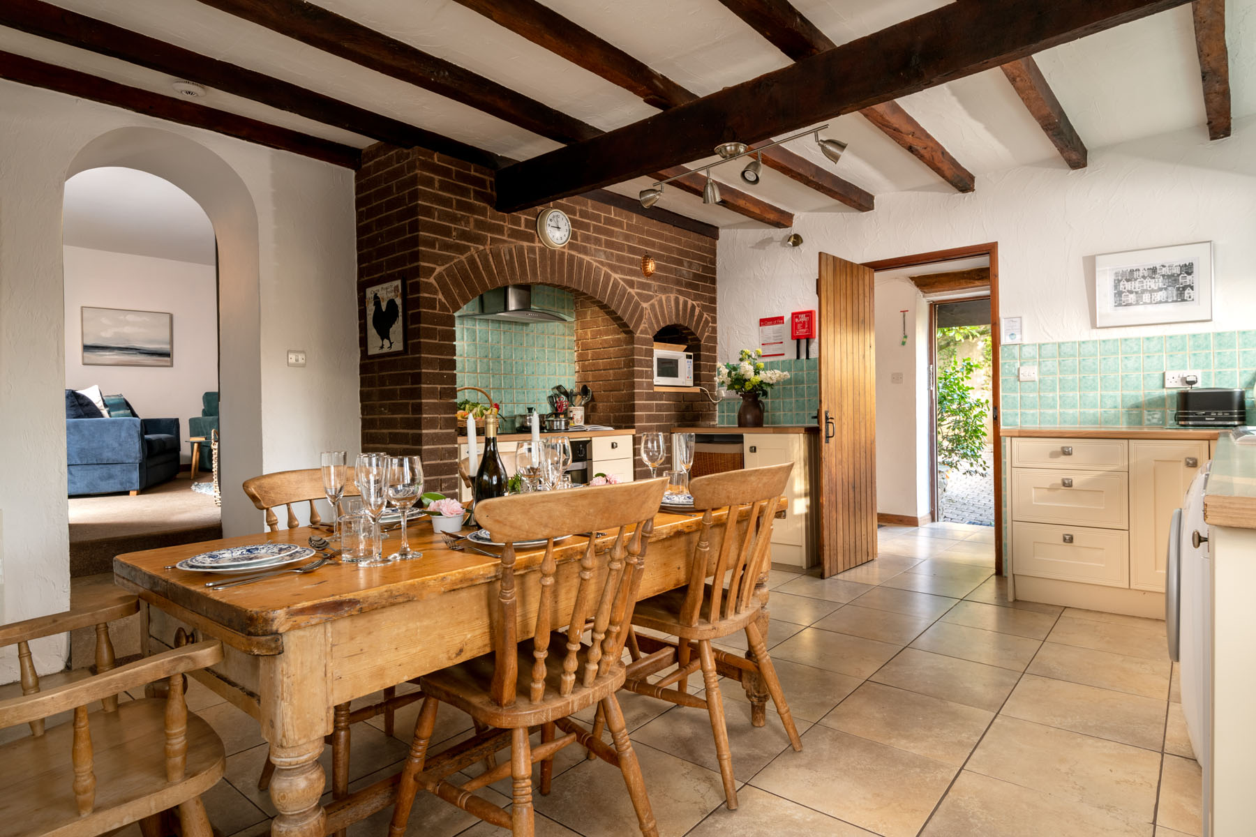 A large farmhouse style kitchen welcomes you into Hyssop cottage. Two steps up and into the lounge with a log burner, perfect for relaxing in front of during the evening. Glass patio doors in the living room lead to the enclosed private terrace with table and chairs, and a garden perfect for relaxing. There is a downstairs w/c leading off the entrance hall. Upstairs there is a king sized bedroom, then along the corridor and down a step to the large bathroom with bath and separate shower. The triple bedroom, can also be turned into a super king and single on request.