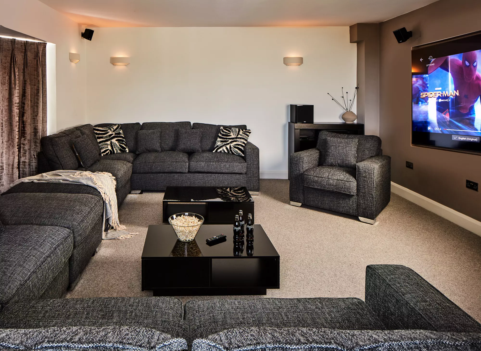 Perfect for group getaways, the property features a large open-plan living and dining area, cinema room, games room and a heated indoor swimming pool. Outside, landscaped gardens and alfresco dining areas provide the perfect place to relax while enjoying the sea views.