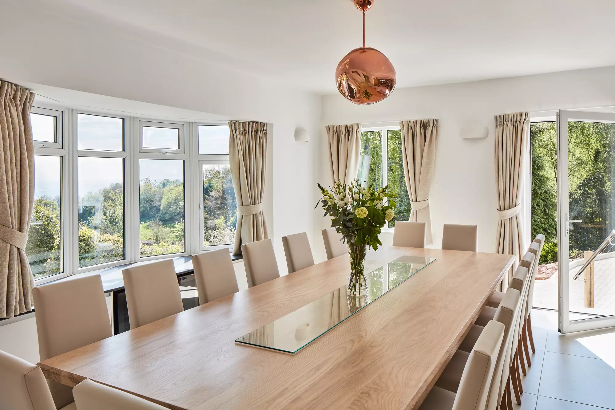 Maidensea House is a luxurious coastal retreat in the peaceful village of Maidencombe, offering stunning 180-degree sea views and space for up to 16 guests across eight beautifully designed en-suite bedrooms.